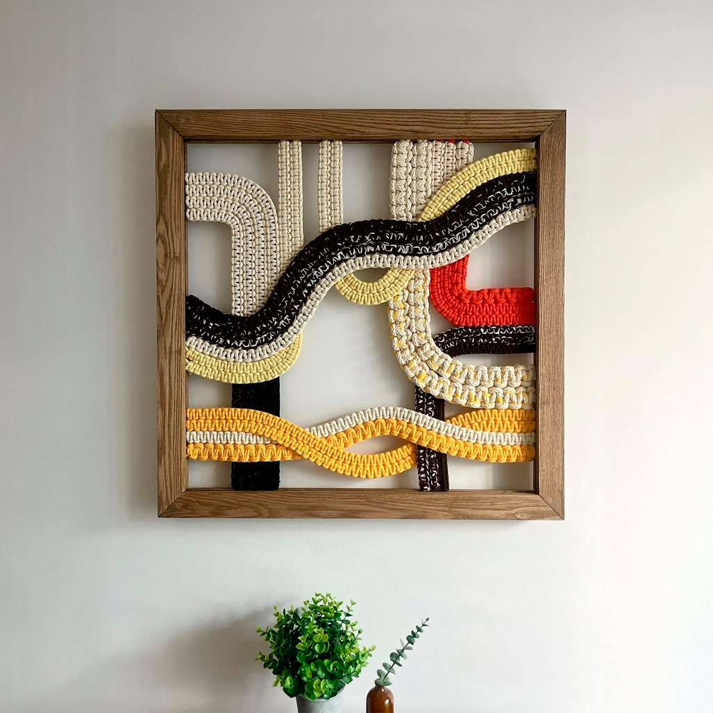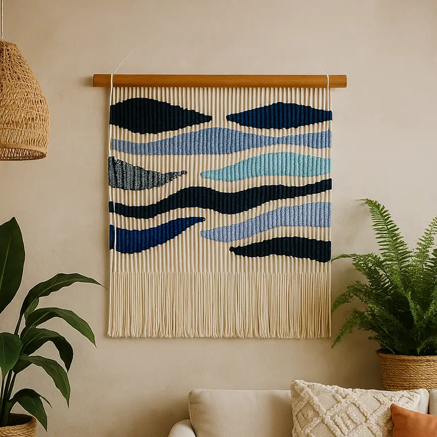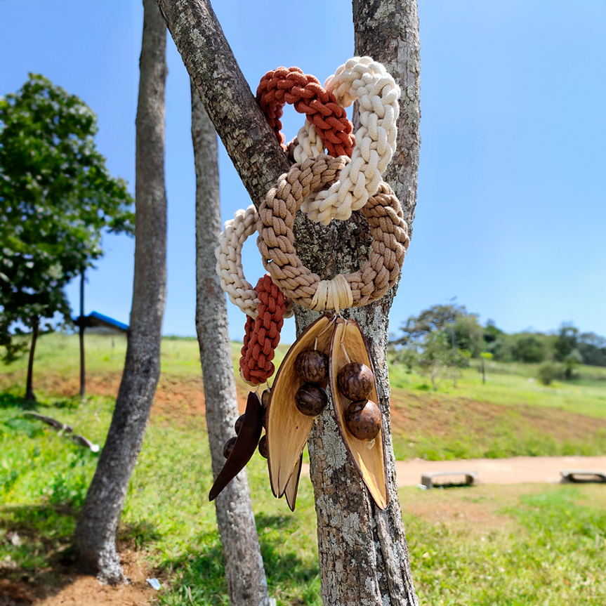 Trabalho com materiais sustentáveis e fibras naturais, sempre em tons que se conectam com a terra, a casa e o sentir. Cada nó é feito à mão, com tempo, cuidado e intenção.